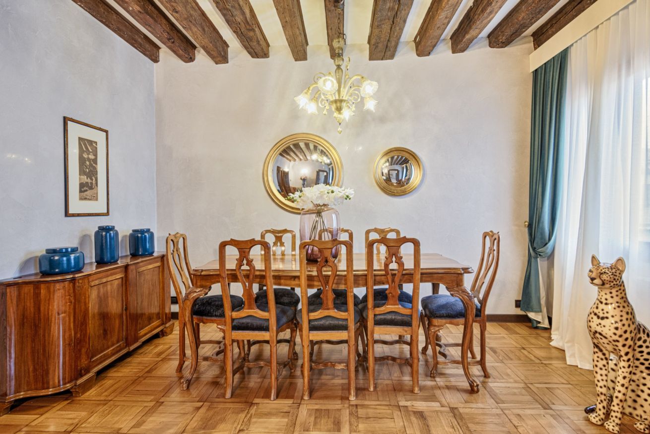 The history and magnificence of Venice welcome you to this building just a stone's throw from Piazza San Marco and Rialto. A majestic central hall, overlooked by three suite rooms with private bathrooms, a refined dining room and a modern kitchen make up this 220 square meter noble floor. Handmade furniture by Venetian craftsmen, exposed beams and fine details, define the ancient priceless atmosphere of the building while its large spaces make it an oasis of peace in the heart of the city.